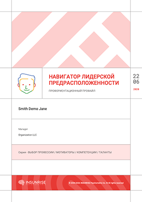 Отчет Навигатор Лидерской Предрасположенности - это уникальный инструмент Профориентации, построенный на методике ассессмента, применяющейся крупнейшими мировыми организациями